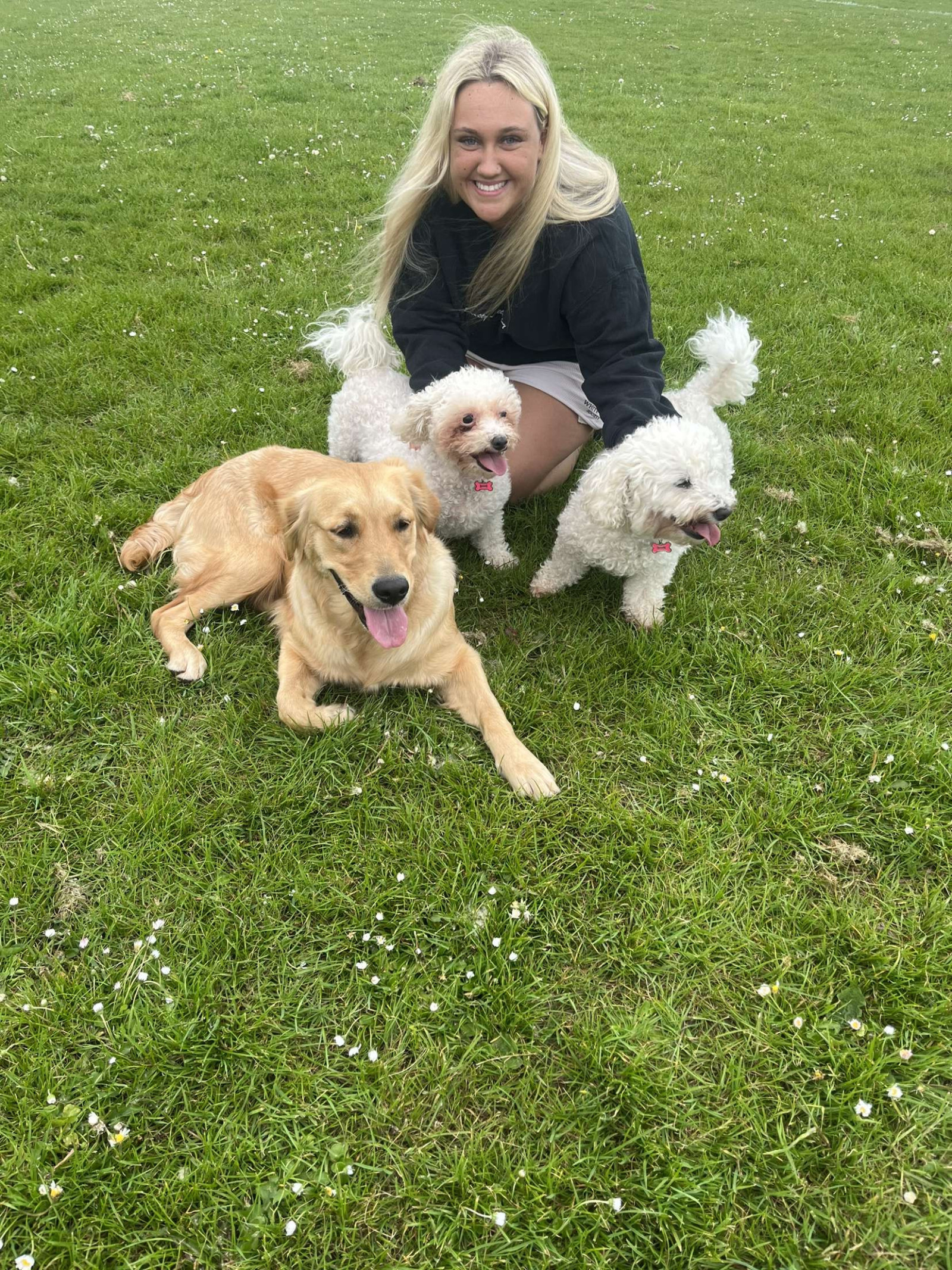 Outside of work, Megan enjoys long countryside walks with her three dogs — Daisy and Bella, her two Bichon Frisés, and Winnie, her Golden Retriever. She also loves spending time with friends and keeping busy with her pets.